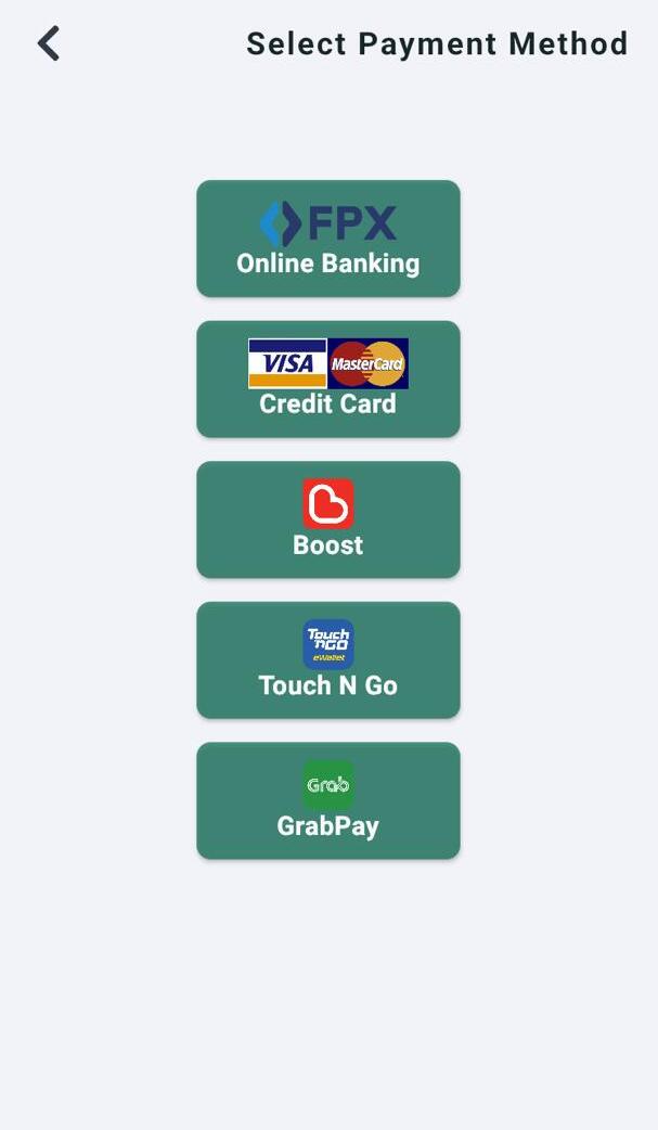 Here are the available payment method in Flexi Parking App