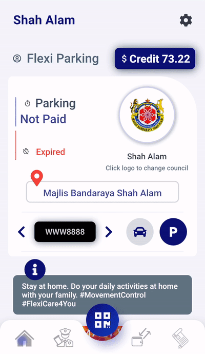 - Once successful transaction, there will be a running timer on the main page showing the number of days left for valid parking below the selected vehicle number.